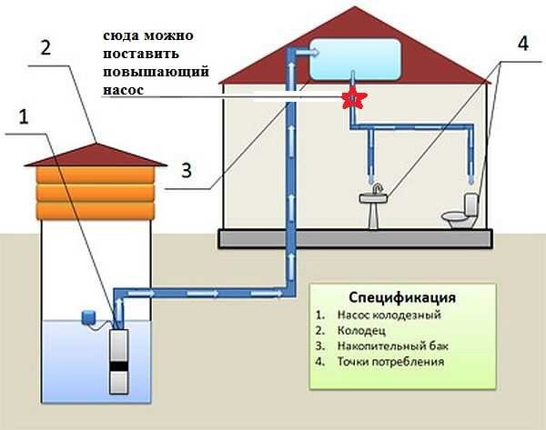 Место установки насосов зависит от конкретной ситуации. Для нормальной работы крана и душа достаточно поставить подкачку на выходе из накопительного бака, если речь идет о такой системе. Если захотите на даче поставить бойлер или стиральную машинку, другие устройства, требовательные к давлению, скорее всего придется ставить перед ними. При достаточной мощности (при достаточном расходе) одного насоса может хватить на два устройства. Только тогда нужно соответственно продумывать схему.
